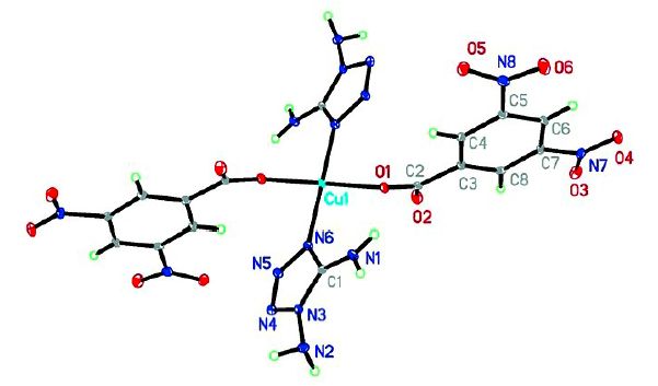 作为配体,首次制备了一系列的富氮混合配体型含能3D金属骨架结构[Cu(N