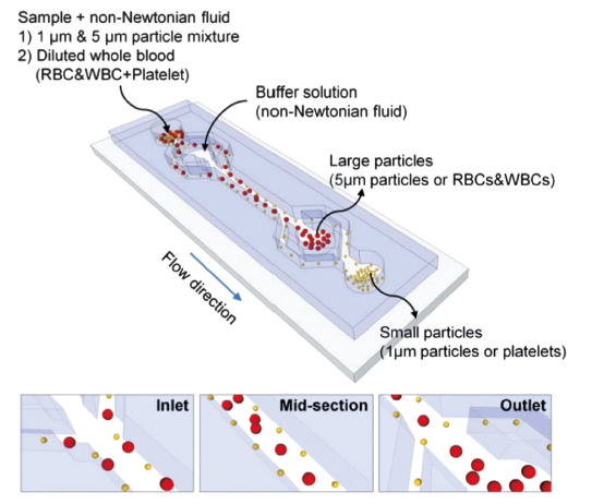 | Nam et al[100] | 1 μm/5 μm PS Platelets/blood cells | Yes | Viscoelastic/Viscoelastic fluid | 30 μL/h | 99.9% >99.8% |